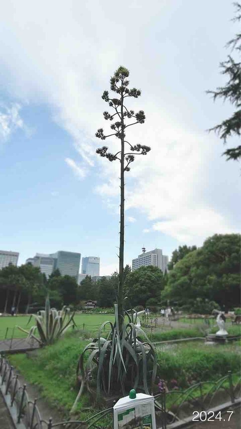 日比谷公園のペリカン噴水のアガベの花を見に行きました
