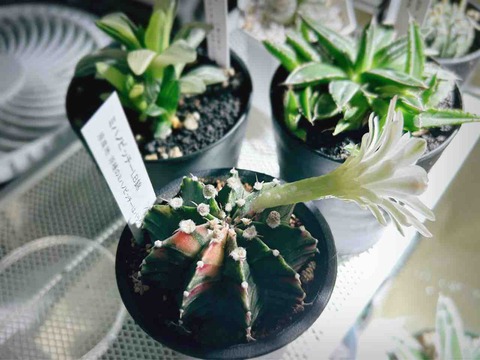 また花が咲きましたギムノカリキューム錦こと緋牡丹錦ことミハノビッチーLB錦なサボテンさんサボテンの花って綺麗ですねあすけんの未来(みき)さん実···
